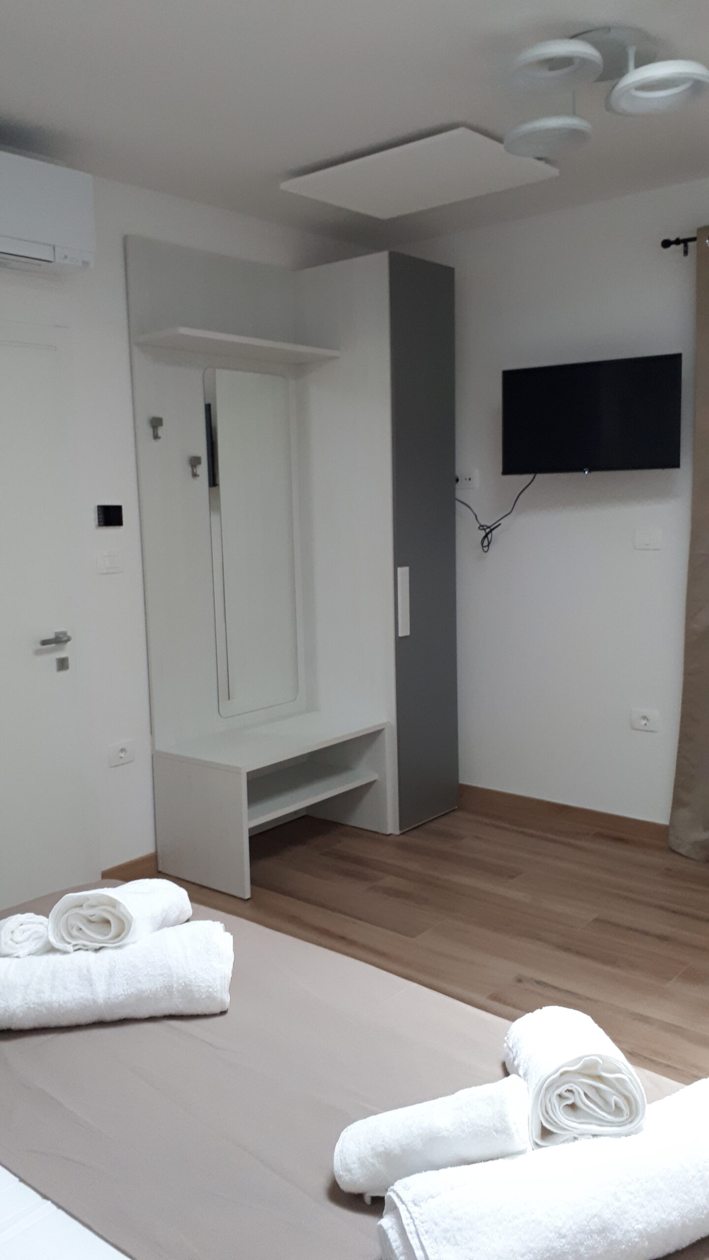 Zakonska postelja – lastna kopalnica s tušem – samostojno ogrevanje/klimatizacija – brezžični internet – satelitska TV – sef – mini bar hladilnik – izbira vzglavnika – omara za prtljago – omara za oblačila – kuhalnik – dostop do apartmaja, rezerviranega za vas, kadar koli podnevi ali ponoči – brezplačno parkirišče.