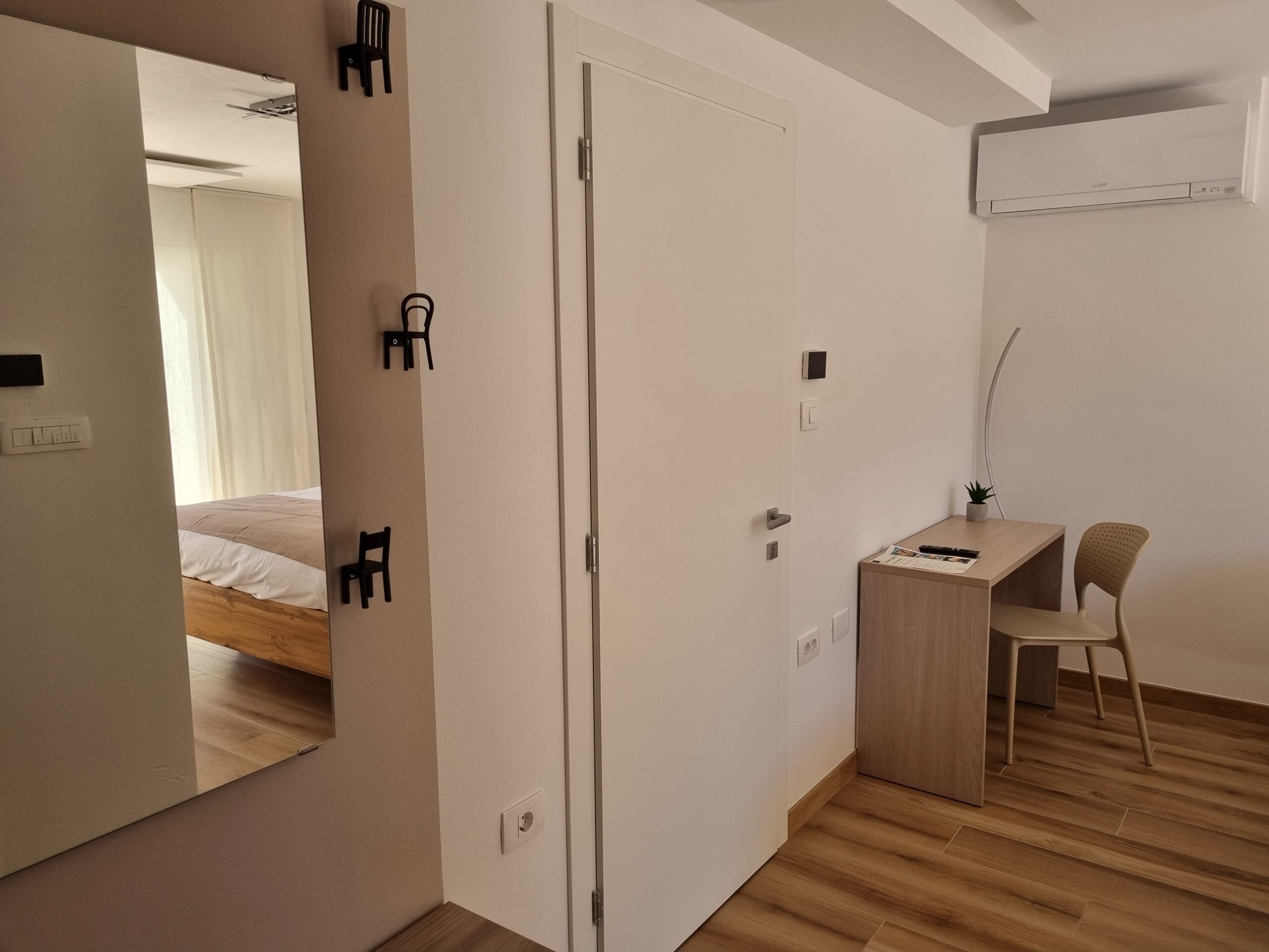 Letto matrimoniale Queen – bagno in camera con doccia – riscaldamento/aria condizionata autonomi – internet wifi – tv satellitare – cassaforte – frigo minibar – possibilità di scegliere il cuscino – armadio posa valigia – armadio per indumenti – bollitore – accesso alla Suite riservato in totale libertà, a qualsiasi ore del giorno e della notte – parcheggio gratuito – possibilità di ricaricare la tua auto elettrica