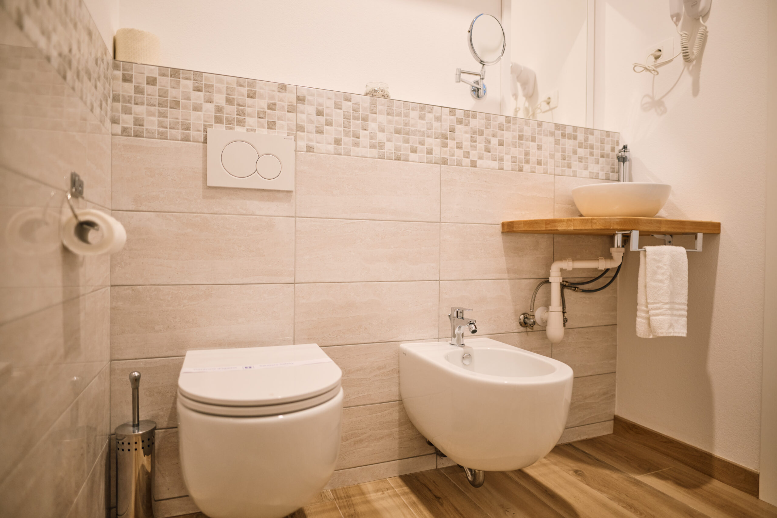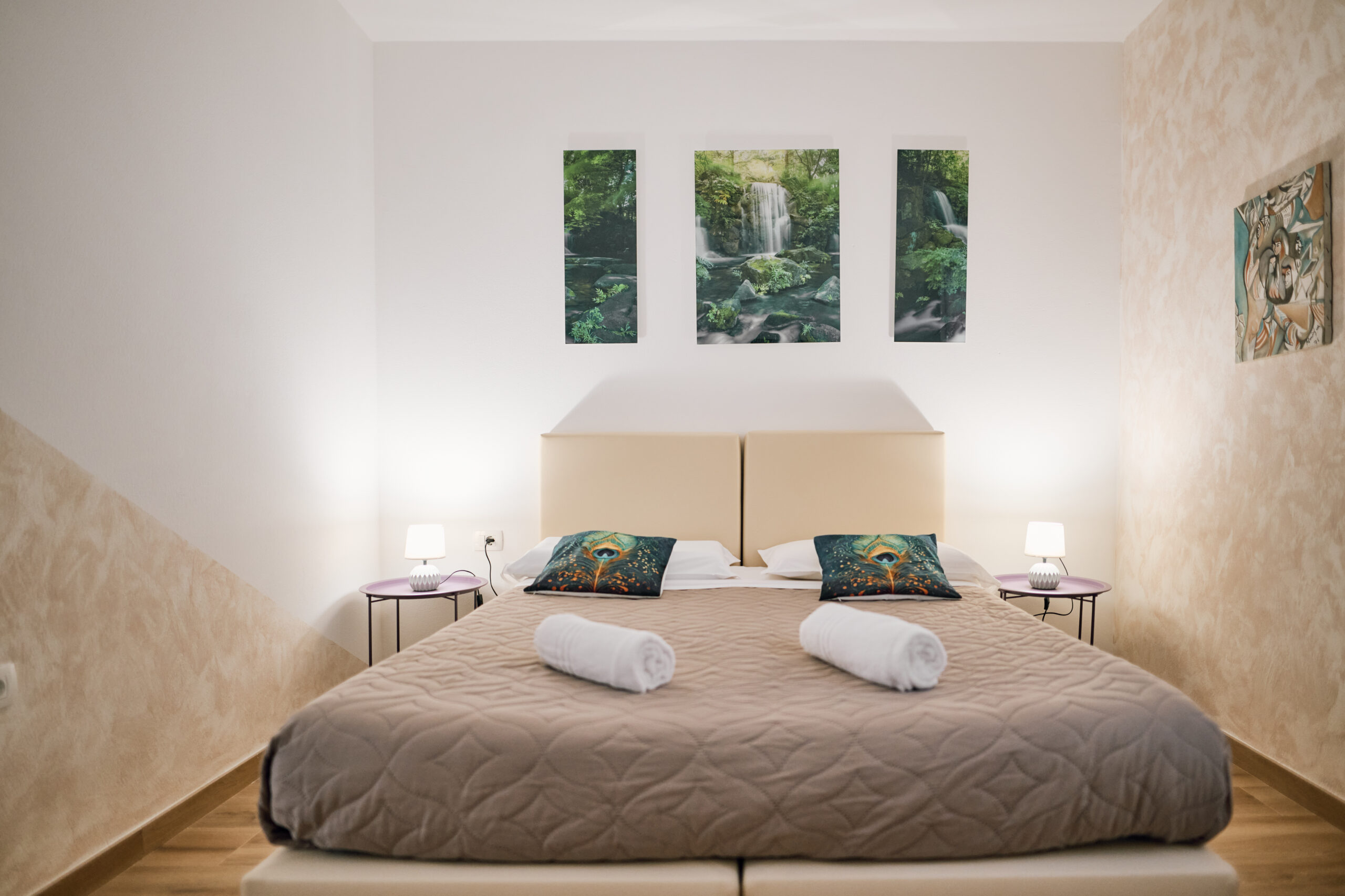 Zakonska postelja/dve enojni postelji – lastna kopalnica s tušem – samostojno ogrevanje/klimatizacija – brezžični internet – satelitska TV – sef – mini bar hladilnik – izbira vzglavnika – omara za prtljago – omara za oblačila – kuhalnik – dostop do apartmaja, rezerviranega za vas, kadar koli podnevi ali ponoči – brezplačno parkirišče.
